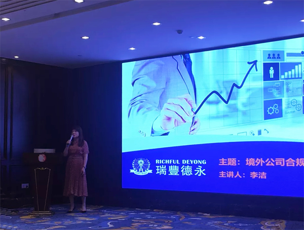 会上,瑞丰德永集团华东区域总经理李洁女士就目前新形势下企业合规运营所面临的突出问题展开了深入浅出的解读和分析。她指出,现阶段境内税务监管越来越严格,个人、企业大额交易也将纳入统一监管;对外投资要符合国家产业政策,境外公司合规化已是必行之策。