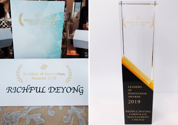 瑞丰德永获授“Leaders of Innovation Awards 2019”荣誉奖杯