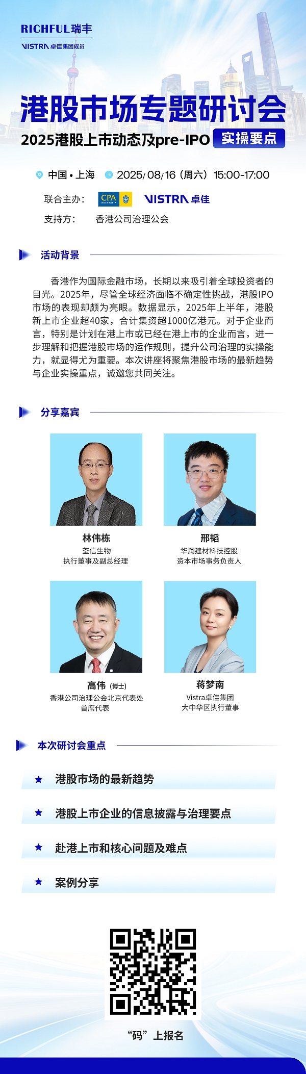 邀请函|8月16日 上海|港股市场专题研讨会——2025港股上市动态及pre-IPO实操要点