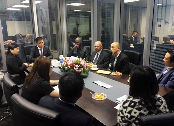 11月8日,瑞丰德永集团董事长陈洪松先生、集团高层龚彦斌先生,在我司香港总部(力宝中心)欢迎远道而来的圣基茨?尼维斯总理Timothy Harris先生、移民部长Les Khan先生和律师Scantlebury先生。