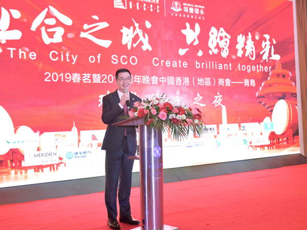 2019年2月23日晚,中国香港(地区)商会-青岛春茗暨周年晩会[上合之城 共绘精彩]和中国香港(地区)商会2019春茗晚宴【金猪贺新岁,科技创明天】,分别在青岛鲁商凯悦酒店和北京千禧大酒店宴会厅隆重举行。