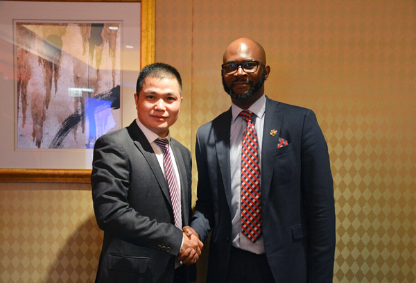 11月8日,瑞丰德永集团董事长陈洪松先生、集团高层龚彦斌先生,在我司香港总部(力宝中心)欢迎远道而来的圣基茨?尼维斯总理Timothy Harris先生、移民部长Les Khan先生和律师Scantlebury先生。