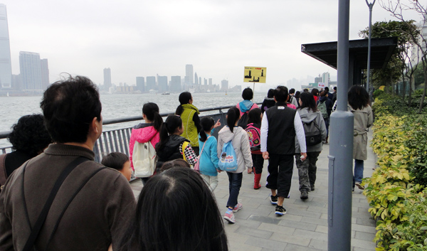 筹款活动步行路线由中山纪念公园到海滨长廊,最后到达中环天星码头,大家在途中不忘拍照留念。