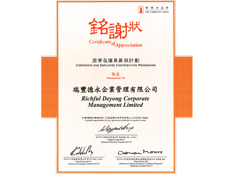瑞丰德永一向热心参与公益慈善活动,造福社群。瑞丰德永全力支持今次筹款活动,为香港公益金筹募善款,让瑞丰德永展开新里程的同时,回馈社会,资助本地社会福利服务,与有需要人士分享成果。