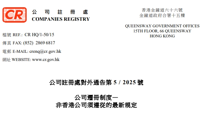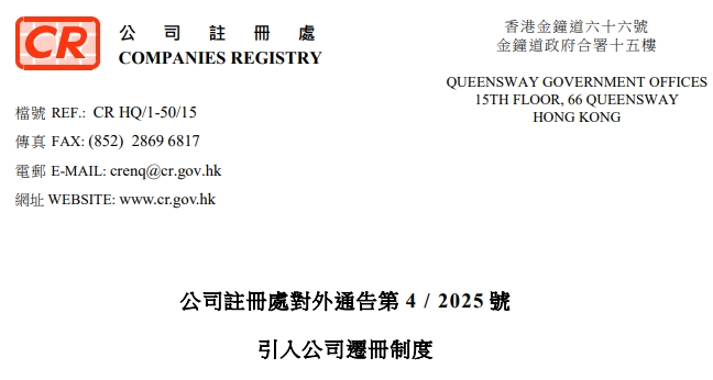 《公司条例》(第622章)已作出修订,引入新的公司迁册制度,让非香港法团迁册来港。在《2025年公司(修订)(第2号)条…