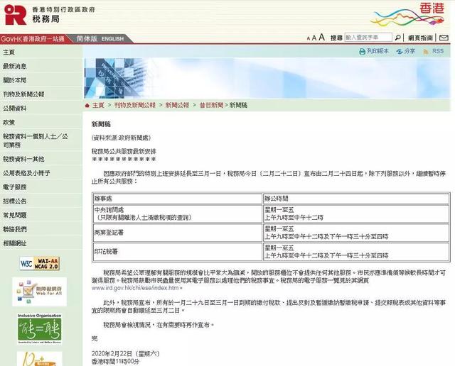 Ïã¸ÛÌØÇøÕþ¸®Ë°Îñ¾ÖÐû²¼ÓÉ2ÔÂ24ÈÕÆð£¬³ýÉÌÒµµÇ¼ÇÊð¡¢Ó¡»¨Ë°Êð¡¢ÖÐÑëѯÎÊ´¦Í⣬ÈÔÔÝÍ£ÌṩÆäËû·þÎñ¡£