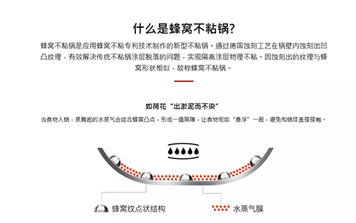 打开康巴赫官网,也处处可见其对于蜂窝不粘专利技术(专利号:ZL 2013 10089292.6)的强调宣传,还特意解释了什么是蜂窝不粘锅。