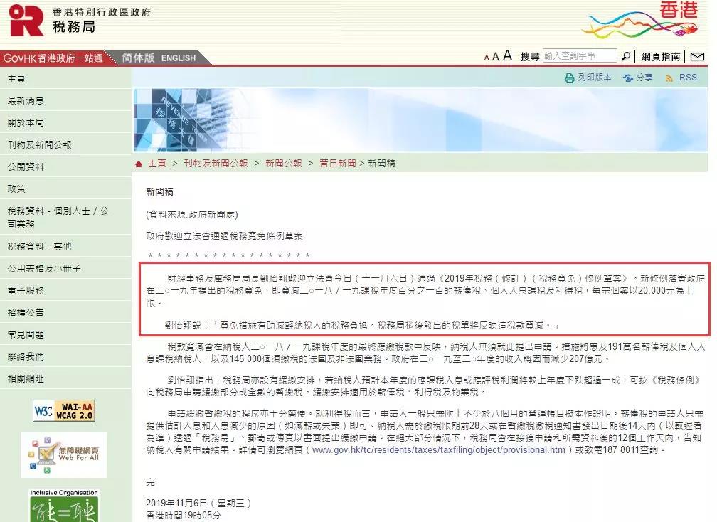 11月6日,立法会通过《2019年税务(修订)(税务宽免)条例草案》,宽免措施有助减轻纳税人的税务负担,港企最高可获2万免税额!