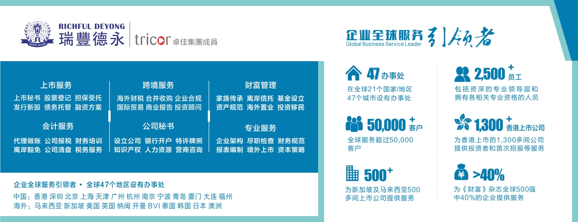 瑞丰德永集团直接代办全球近30个属地的离岸公司注册。
