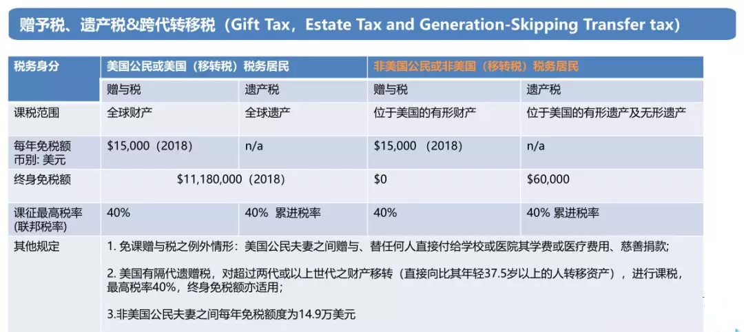 首先,我们知道,美国的遗产税高昂,在特朗普上台之前遗产税最高税率高达55%,而后经过税改、降税的调整,遗产税已经降到了40%,同时免税额。