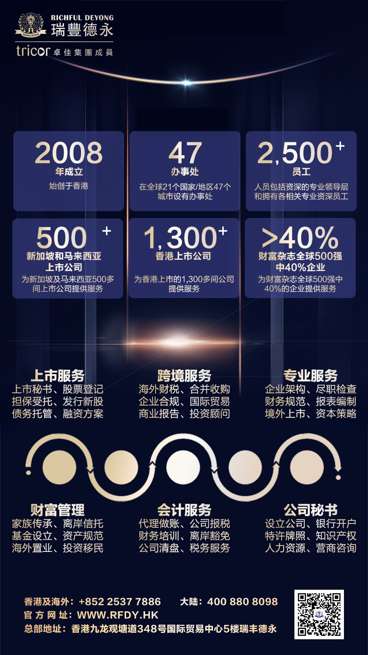 瑞丰德永集团直接代办全球近30个属地的离岸公司注册。