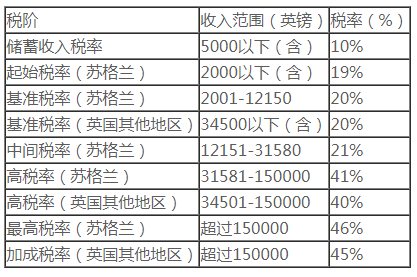 般情况下,英国税收居民的个人所得税税率如下:
