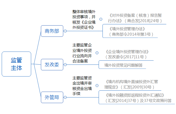 ODI的监管架构涉及的政府单位主要有商务部、发改委和外管局。