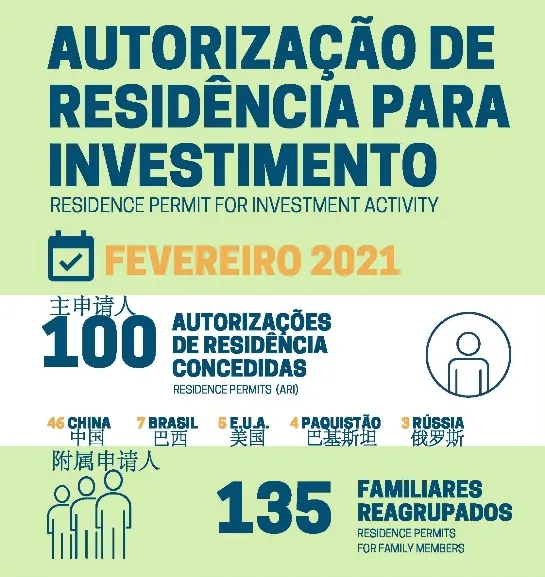 根据葡萄牙移民局(SEF)发布了2021年2月分黄金居留许可数据,2月份葡萄牙SEF向235位申请者(100位投资人+135位家属)授予了黄金居留许可,相比2021年1月份获批的135位申请者(55位投资人+80位家属)环比增长了82%。