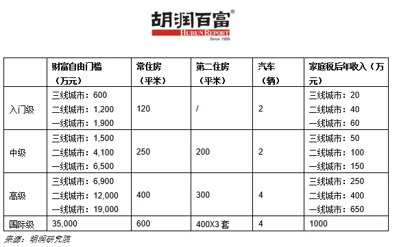 从上表中我们可以发现,最低的门槛为600万资产,「600万资产」这一数字,对应着此前《2020胡润财富报告》中的中国“富裕家庭”。