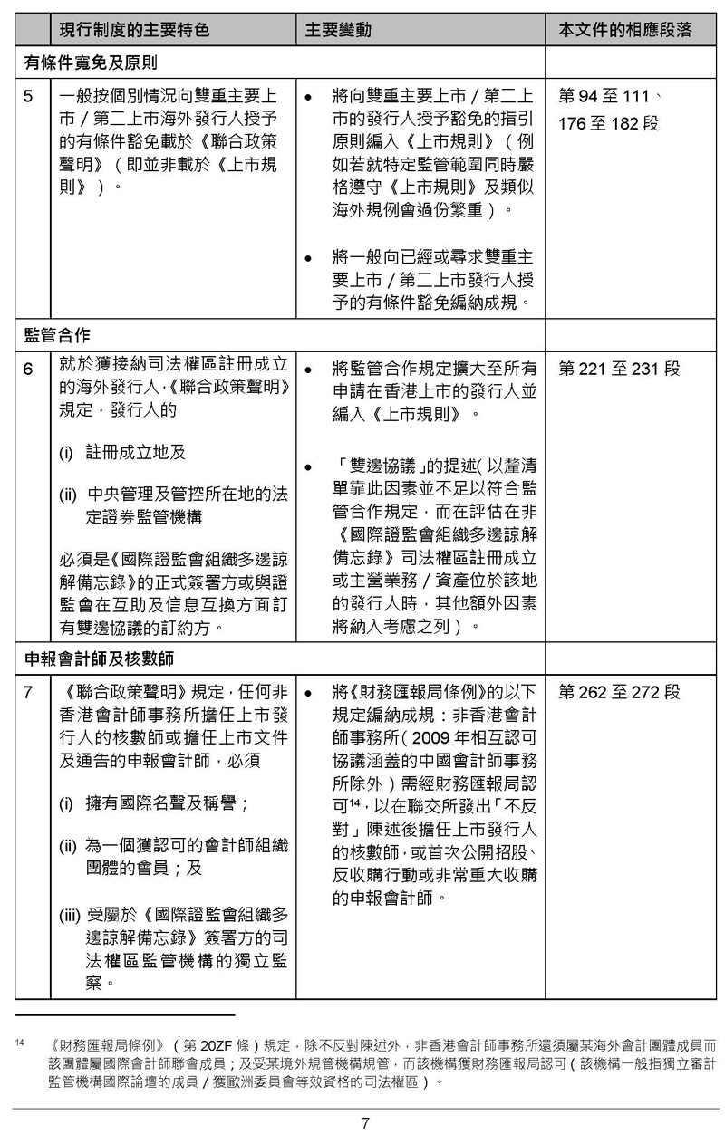 没有不同投票权架构的大中华发行人可作第二上市,而毋须证明其是“创新产业公司”,及上市时最低市值将改为30亿元港币(若能证明其在合资格交易所有至少五个完整会计年度的良好合规纪录)或100亿元港币(若能证明其在合资格交易所有至少两个完整会计年度的良好合规纪录)。