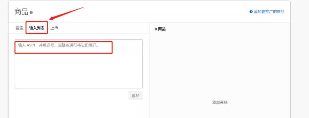 ②输入列表:此方式,输入ASIN,并用逗号、空格或换行将它们隔开。