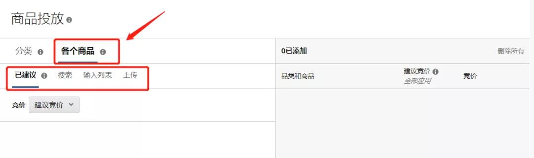 第七步:在【商品】模块中,添加您想要在此广告活动中推广的商品。在添加要推广的商品,有三种方式:
