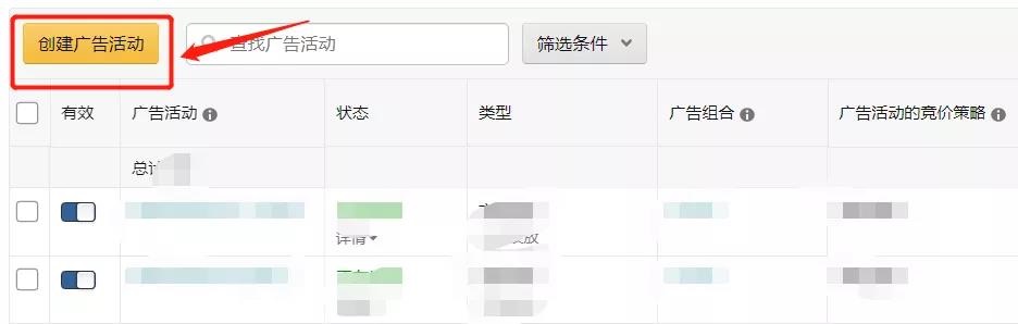 第二步:在广告活动页面,找到【创建广告活动】。