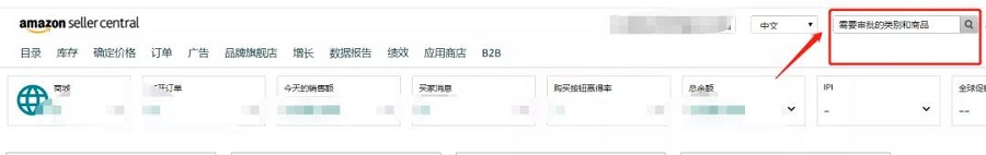 在亚马逊卖家后台搜索框中输入——需要审批的类别和商品。