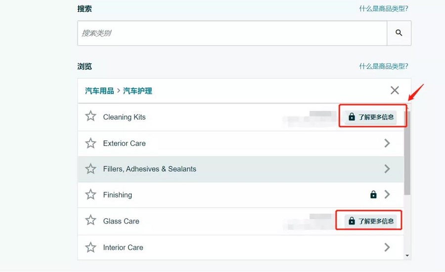 找到你的产品所在的分类,看到有锁的,说明该分类是需要审核的。