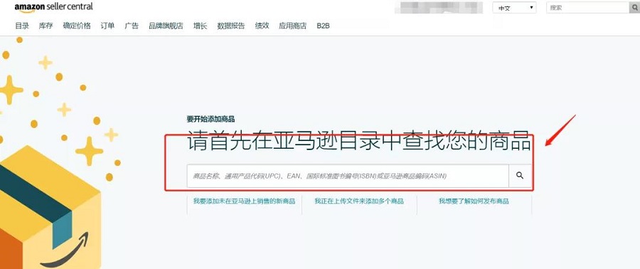 在后台的添加新商品界面的搜索框中输入ASIN。