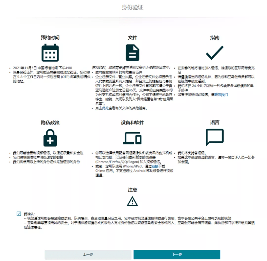 请您在提交审核申诉资料的同时,于收到邮件7天内点击邮件内链接预约视频面试,否则您将没有资格在亚马逊商城销售商品。