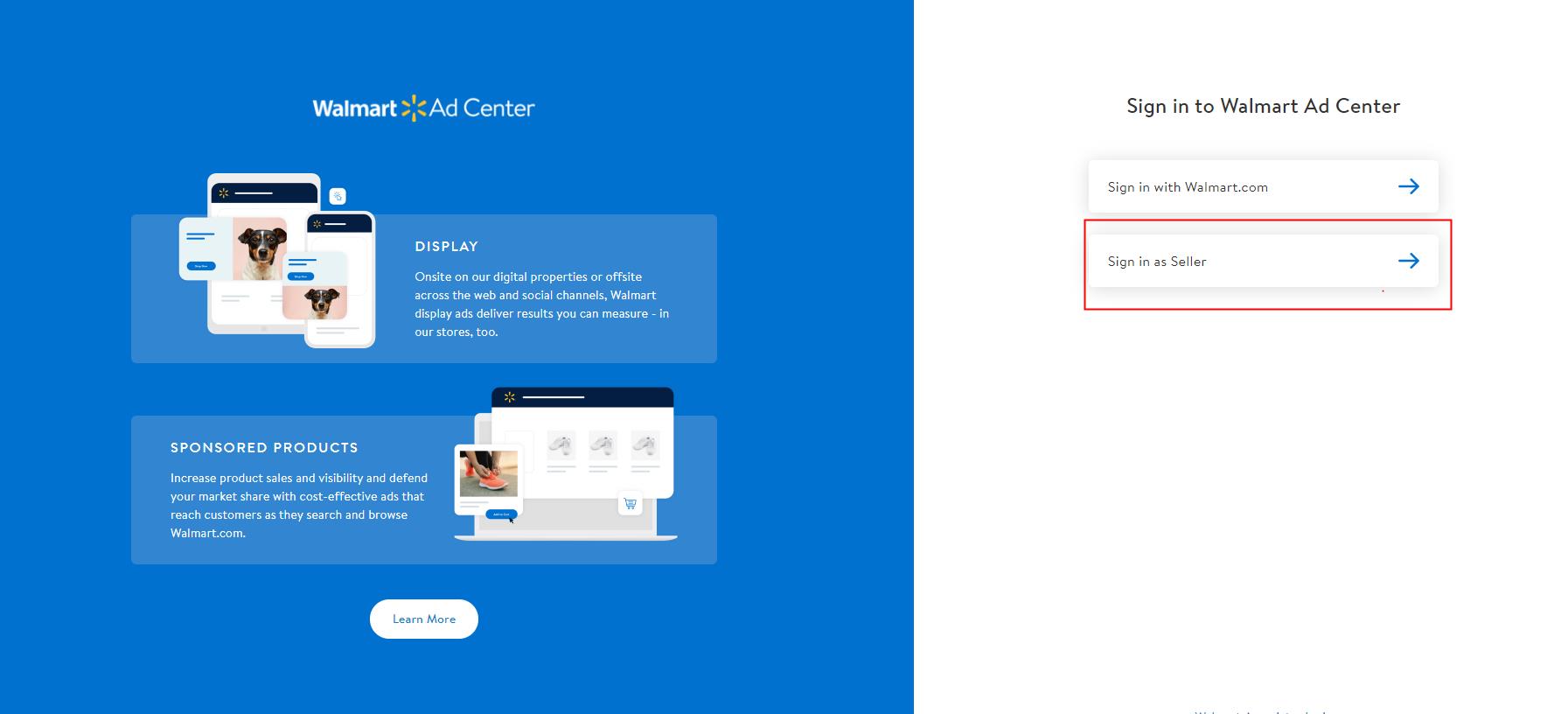 第 1 步:如图1所示,在 Walmart Ad Center广告平台上以卖家身份登录