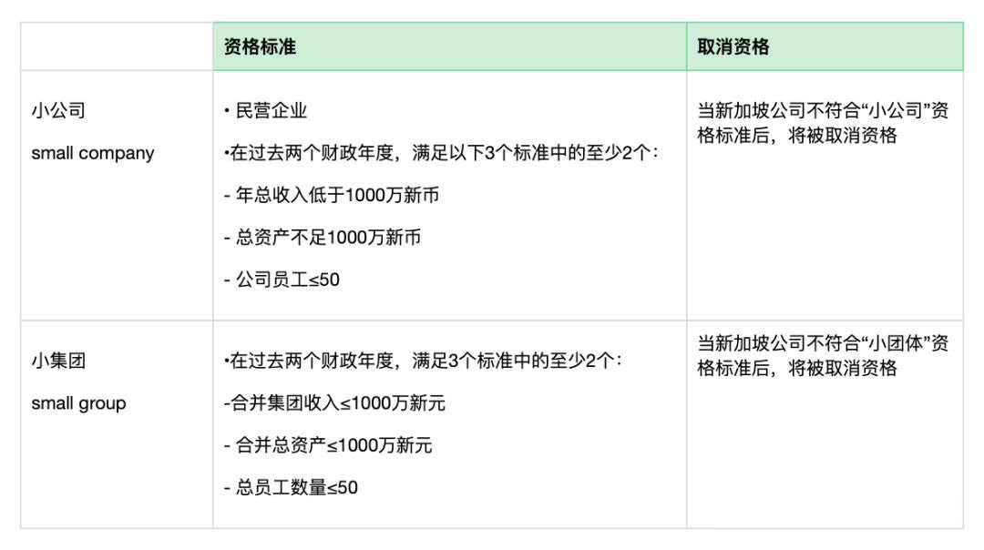 自2015年7月1日或之后开始财政年度的新加坡公司财务报表豁免审计。对于属于集团性质的新加坡公司,在以下条件下有资格获得审计豁免: