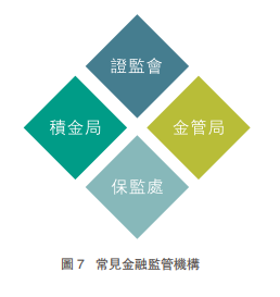 香港目前没有一家专责规管信托业的监管机构。一些负责监管整体银行及金融服务业的监管机构,往往同时监管市场上所提供和管理的产品及服务组合。一般来说,信托公司和提供信托服务的公司或个别人士在审批或发牌上无须向监管机构提出申请。尽管某些在香港提供的服务只可由香港注册的信托公司提供,仅有某些受托人和产品是受到不同的监管机构规管(例如强积金受托人便是由积金局规管)(见图7)。并且只有已注册的信托公司可以:申请遗产承办或信托管理;获法院委任为受托人;申请作为强积金计划的核准受托人。