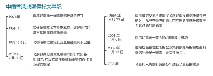 REIT是集体投资计划,旨在通过定向投资于产生收入的房地产投资组合来向投资者提供汇报。REIT采用的结构与单位信托类似。正如其他零售基金,REIT向投资者提供投资于高端商业物业的机会。以人民币计价的REIT最近已经推出:首只人民币计价且市值最大的REIT-汇贤产业信托已经在香港上市。