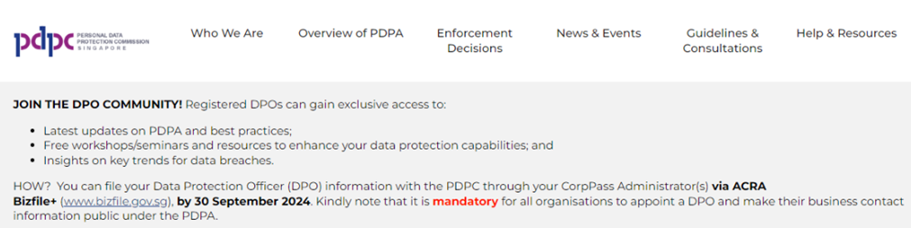 新加坡公司须于2024年9月30日前委任至少一名数据?;す貲PO