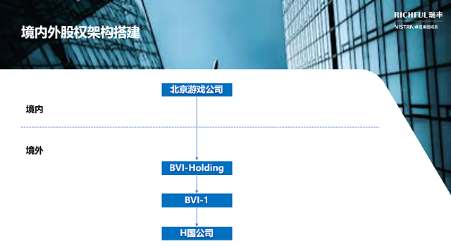 RICHFUL瑞丰协助以客户实质经营为出发点,综合考虑游戏行业会涉及的税务、资金、融资、激励、知识产权?;さ确矫?,为客户重构了境内外股权架构,并协助客户完成公司注册及海外账户开立。