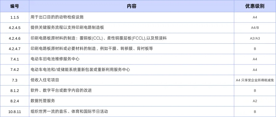 1、新增投资促进行业:重点支持高科技与创新型产业,如印刷电路板(PCB)制造及相关供应链;