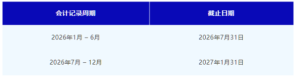大型实体和非大型非控股实体必须准备年度财务总结,并保存在其注册办公室。常见截止日期: