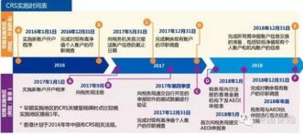 2017Äê1ÔÂ1ÈÕ£¬Íê³É¶Ôпͻ§¿ª»§Á÷³ÌµÄ¸ÄÔ죬¶ÔÓÚ2017Äê1ÔÂ1ÈÕÒÔºóµÄпª»§¿Í»§£¬¿ÉÒÔͨ¹ý¾¡Ö°µ÷²é³ÌÐòʶ±ð³öÆäÖеķǾÓÃñÕË»§¡£2017Äê12ÔÂ31ÈÕǰ£¬Íê³É¶Ô¸ß¾»Öµ£¨ÔÚ2016Äê12ÔÂ31ÈÕ½ðÈÚÕË»§¼Ó×ÜÓà¶î´óÓÚ100ÍòÃÀ½ð£©´æÁ¿¸öÈ˿ͻ§µÄ¾¡Ö°µ÷²é³ÌÐò£¬Ê¶±ðÆäÖеķǾÓÃñÕË»§¡£2018Äê6ÔÂ30ÈÕǰ£¨Ô¤¼Æ£©£¬Íê³ÉÏò¹ú˰×ֵܾÄÊ×´ÎÐÅÏ¢±¨ËÍ£¬²¢ÔÚÒÔºóÄê¶ÈÿÄ궨ÆÚÏò¹ú˰×ֽܾøÐÐÐÅÏ¢±¨ËÍ¡£2018Äê9ÔÂ30ÈÕǰ£¬Öйú½«ÓëÆäËû²ÎÓë CRS µÄÏ½ÇøÍê³ÉÊ×´ÎÏ½Çø¼äµÄÐÅÏ¢½»»»£¬ÒÔºóÄê¶ÈÒ²½«Ã¿Ä궨ÆÚ½øÐÐÏ½Çø¼äµÄÐÅÏ¢½»»»¡£2018Äê12ÔÂ31ÈÕǰ£¬Íê³É¶ÔÆäÓàËùÓдæÁ¿¿Í»§µÄ¾¡Ö°µ÷²é³ÌÐò£¬Ê¶±ðÆäÖеķǾÓÃñÕË»§¡£
