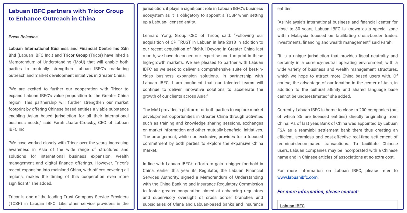 纳闽国际商业金融中心(Labuan IBFC)中国授权代理机构