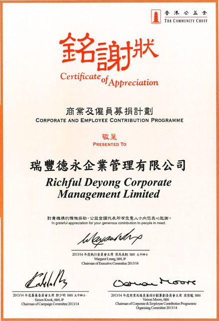 同时,瑞丰德永信守对社会的承诺,致力成为负责任的企业公民,通过多种形式为社会公益尽力。慈善、环保、义工服务、关怀员工是瑞丰履行社会责任的重点。
