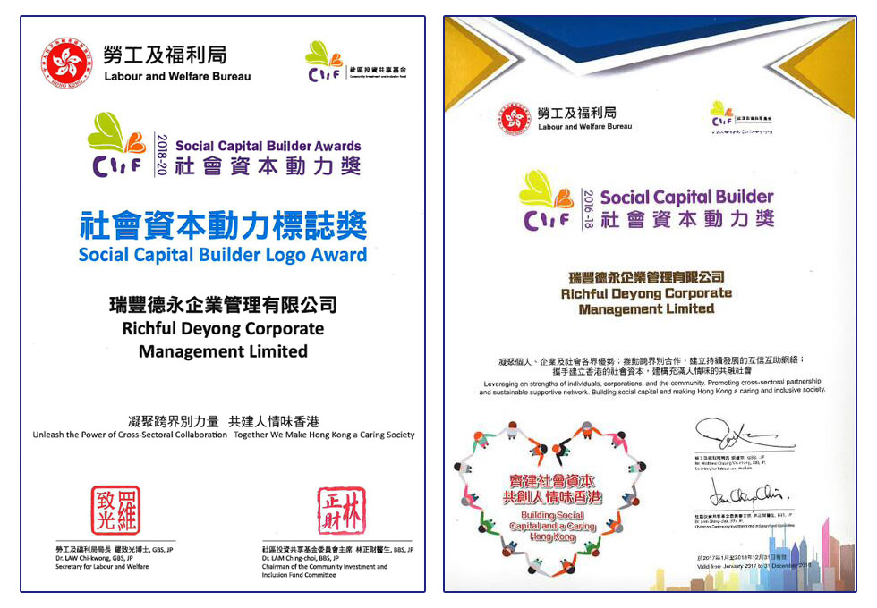 香港劳工及福利局「社会资本动力奖」