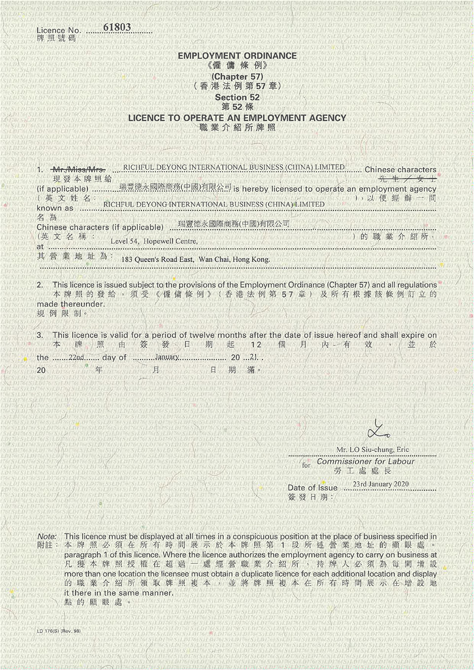 香港职业介绍所牌照