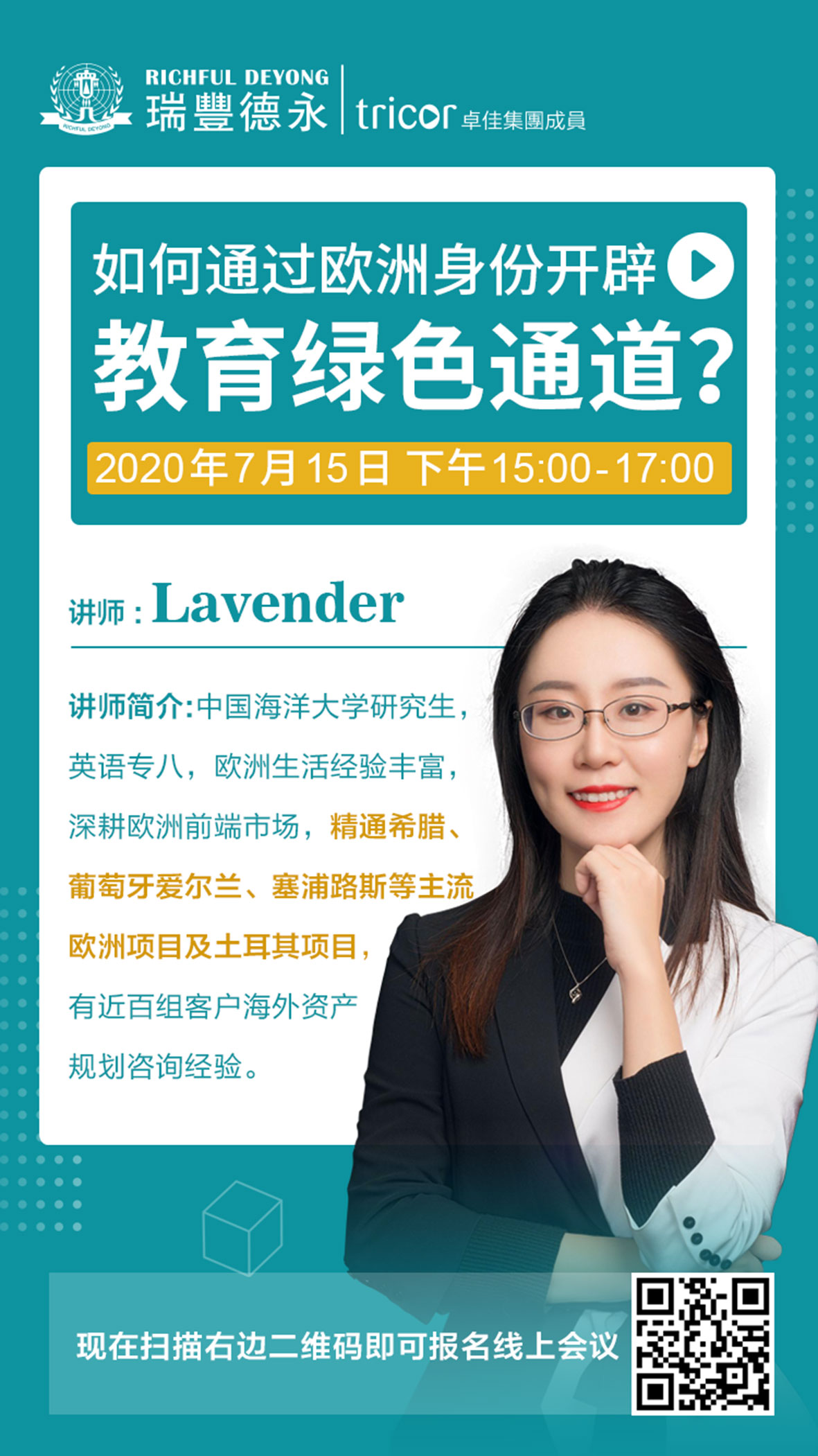 根据胡润中国投资移民白皮书显示,子女的教育问题是高净值人群选择移民的最主要原因,占比83%。欧洲拥有全球顶尖的教育资源,如何通过获取欧洲身份为家人开辟教育绿色通道?瑞豐德永7月为您准备好该项研讨主题,诚邀您一起参与↓↓